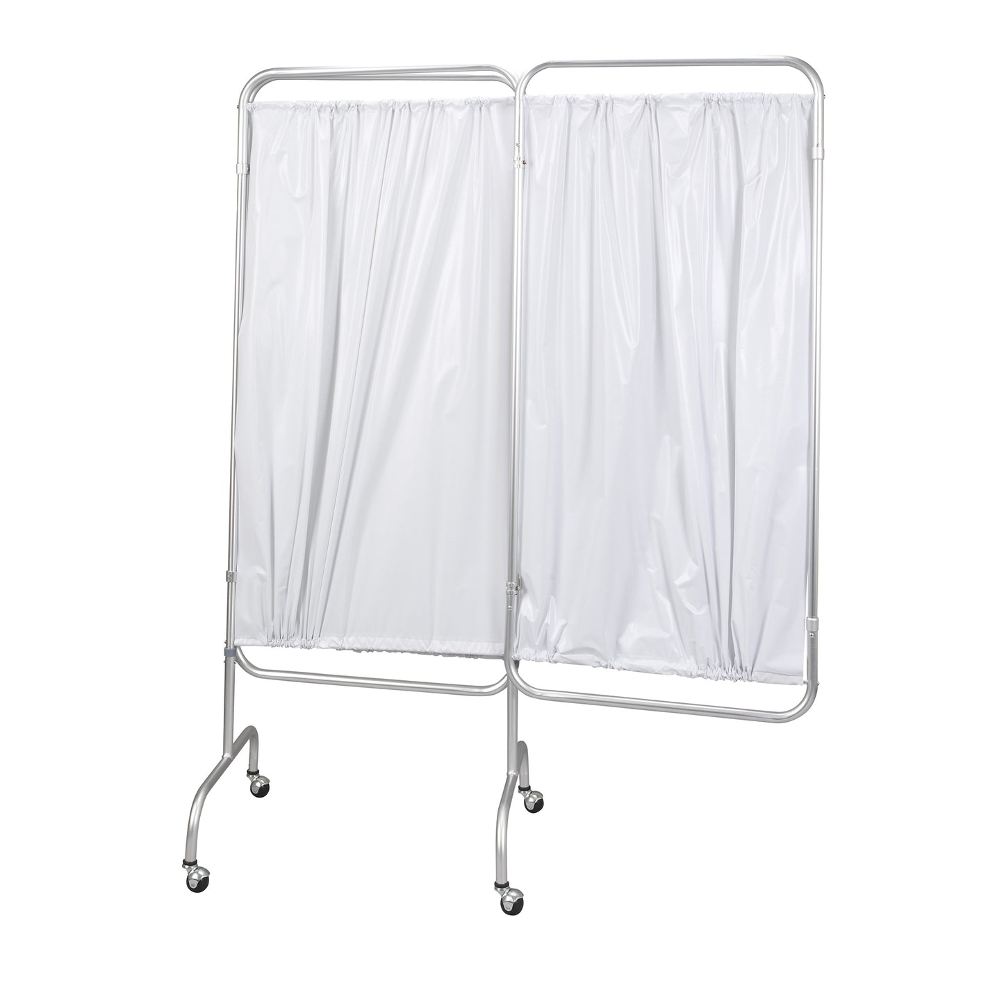 Manufactured with flame retardant bacteriostatic white vinyl and sturdy 1" anodized aluminum tubing, the 3-panel privacy screen from Drive Medical is well-built and functional. The materials are as easy to maintain as they are useful. Each hinged panel measures 56" high and 27. 5" wide, giving the product an overall height of 70. 5". Four 3" hooded casters make transportation and repositioning a cinch.