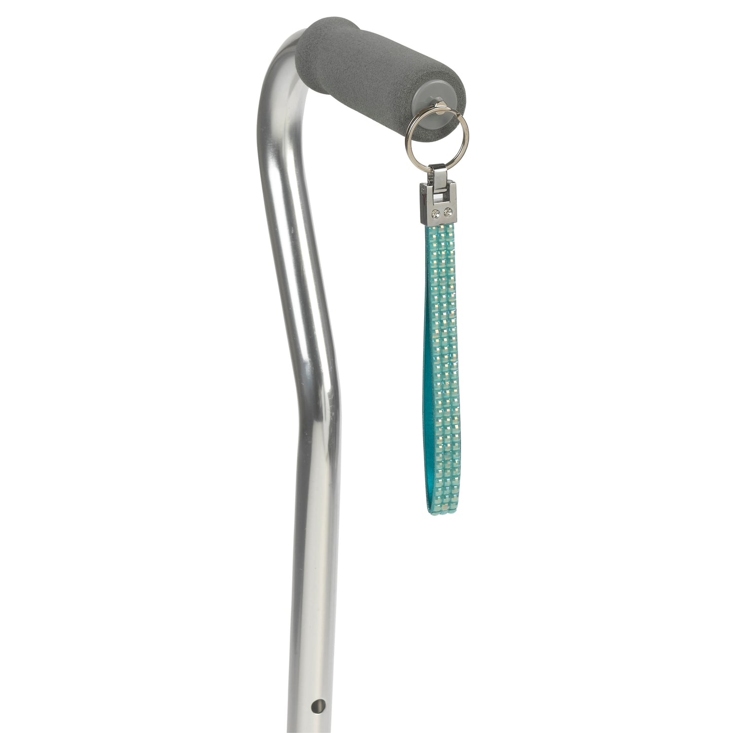 The Drive Medical Bling Cane Strap is designed for functionality and style. It easily attaches to most canes and provides additional support and security while walking. The Cane Strap is available in pink, purple, and teal colors.