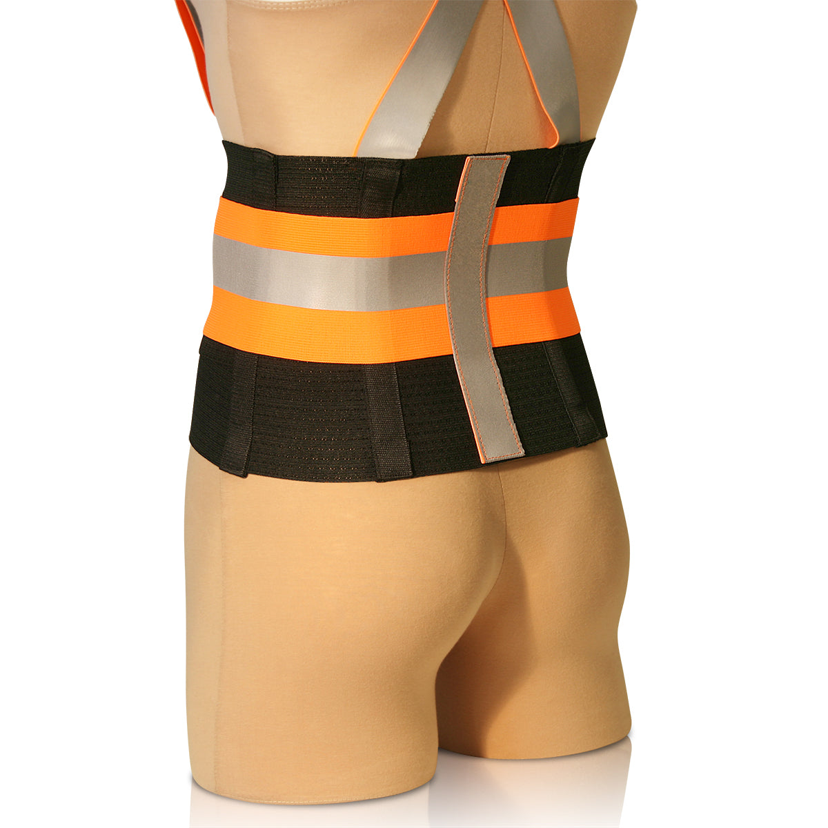 - Overlapping orange reflective 4" single outer-belt provides additional compression to abdominal area (Low-Profile 3"). 4 flexible polypro boning elements for added support.