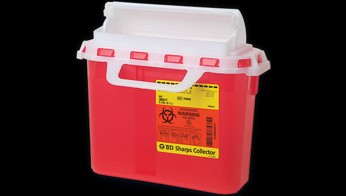- BD Patient room sharps collector counterbalanced door, 2 gal, Red