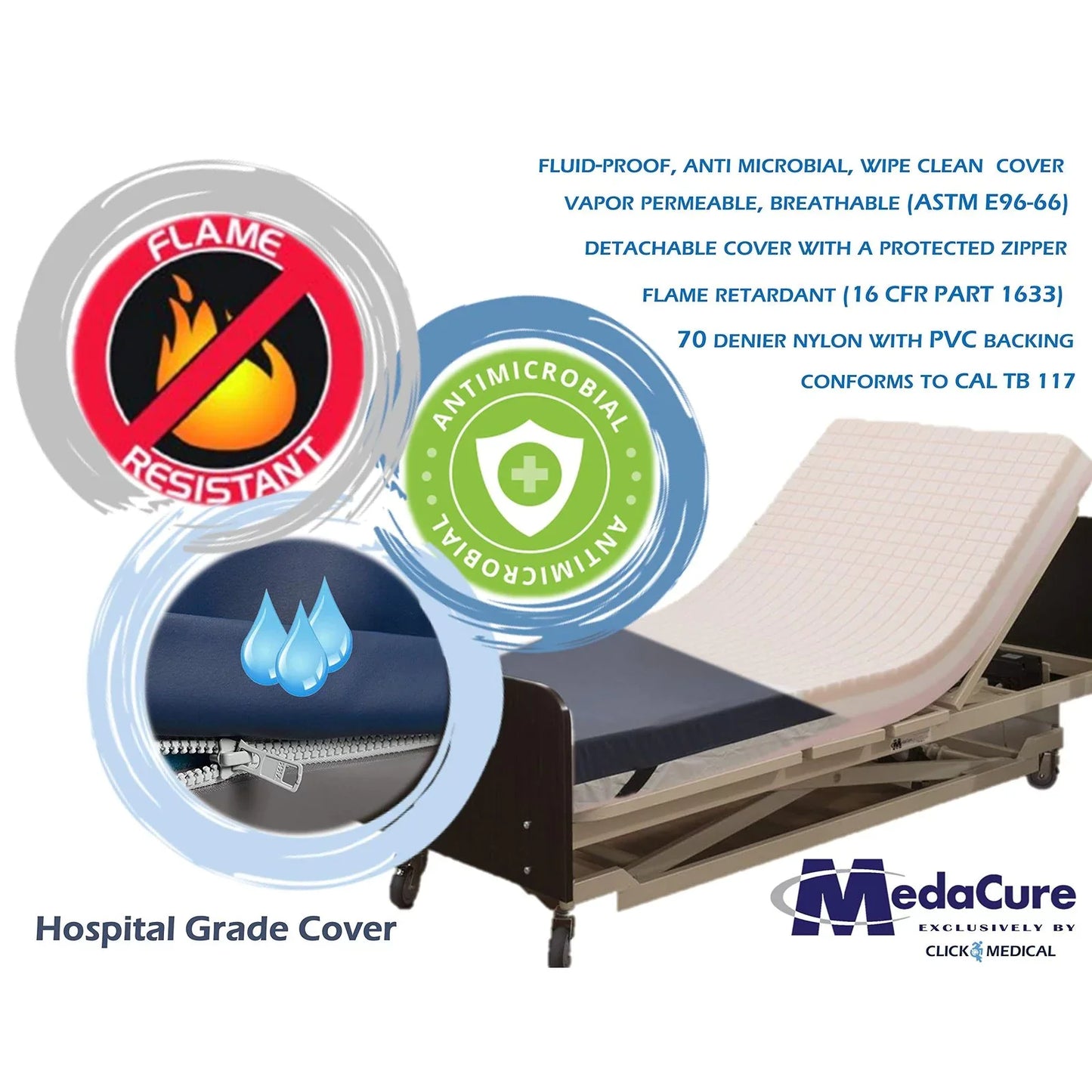 Pressure Redistribution Foam Hospital Mattress series provides the highest quality therapy surface in long-term care. Made from the best quality and high-density European foam, Pro-X provides maximum prevention for Stage II pressure ulcers. The 3 tiered foam is firmer at the base with a combined convoluted top with memory foam and heel slope. Includes a hospital-grade cover with an anti-slip base and elastic straps that keep the mattress firmly in place for ultimate patient safety.