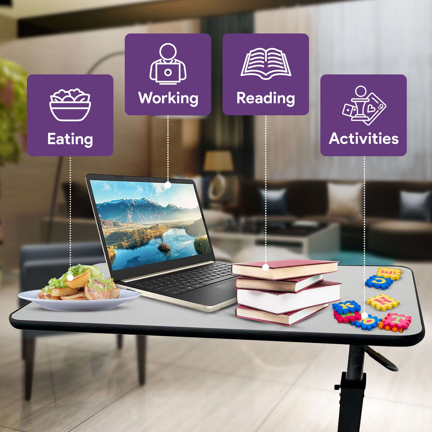 Crafted with meticulous attention to detail, the ProHeal Overbed Table offers a generous tabletop surface, providing ample space for an array of activities. From enjoying breakfast in bed, catching up on your favorite reads, or working on your laptop, this versatile table becomes an extension of your lifestyle, enabling you to make the most of every moment.