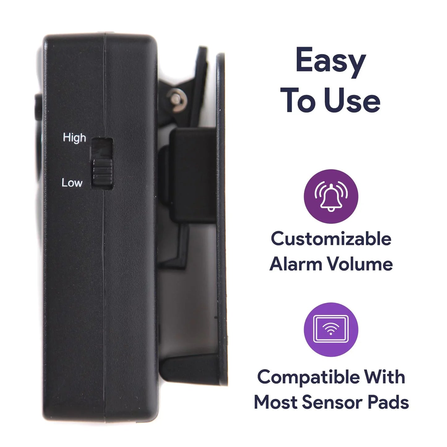 False alarms are prevented with these fall alert devices for elderly as patients shift their weight or position in the seat or bed. The alarm ceases when pressure is reapplied. Mounting bracket and clip included.