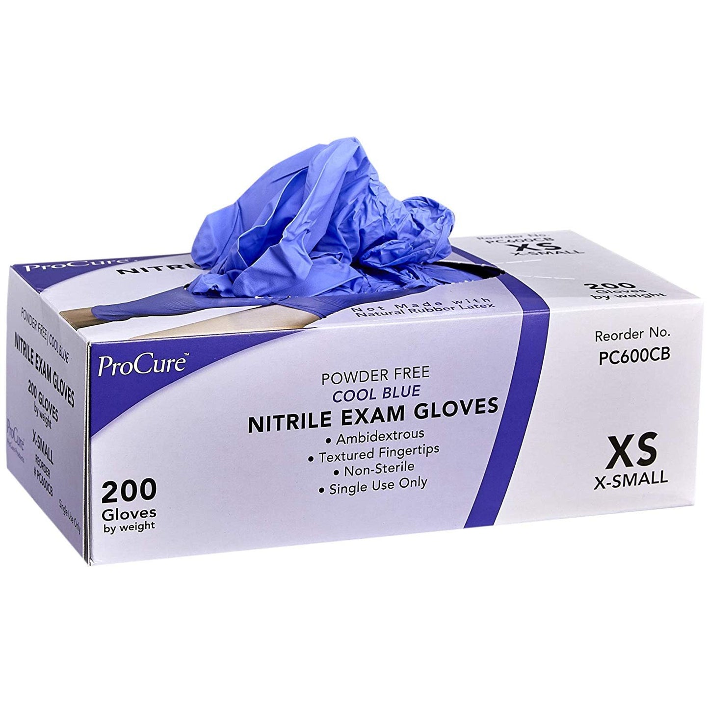 ProCure Disposable Nitrile Gloves - X-Small, 200 Count Cool Blue