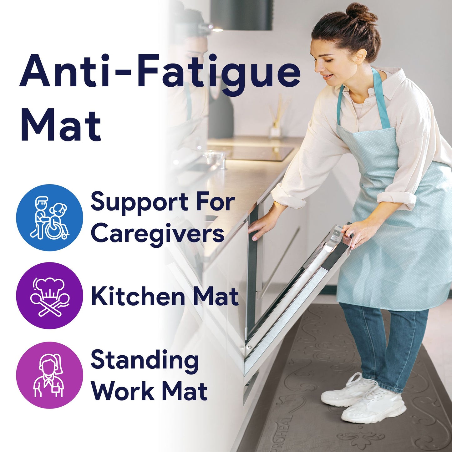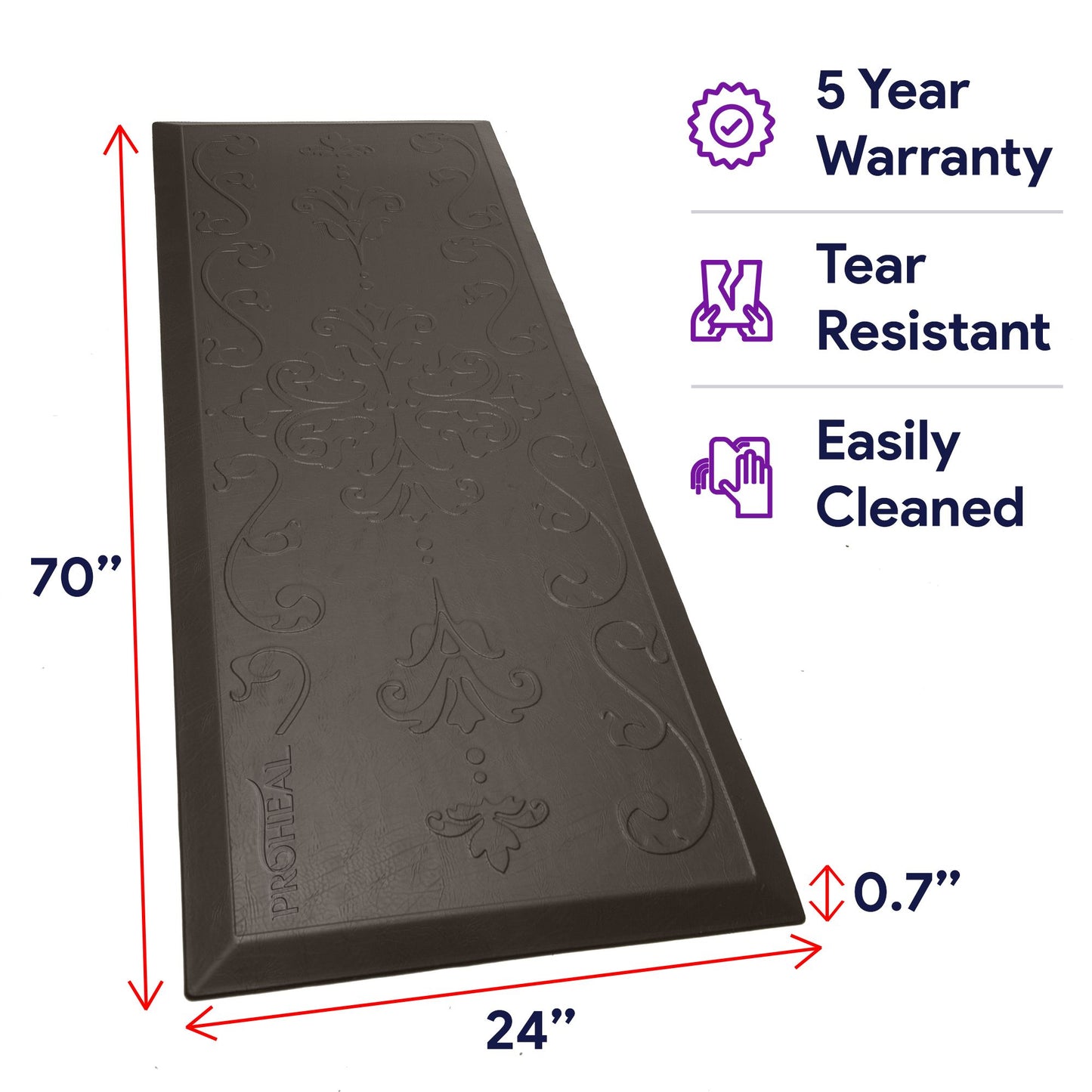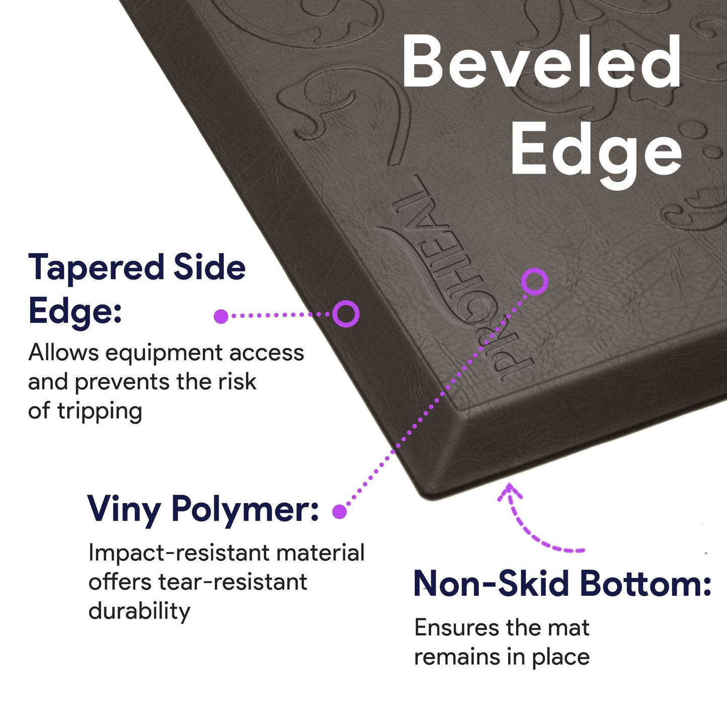 - A non-skid bottom helps keep the mat safely in place.