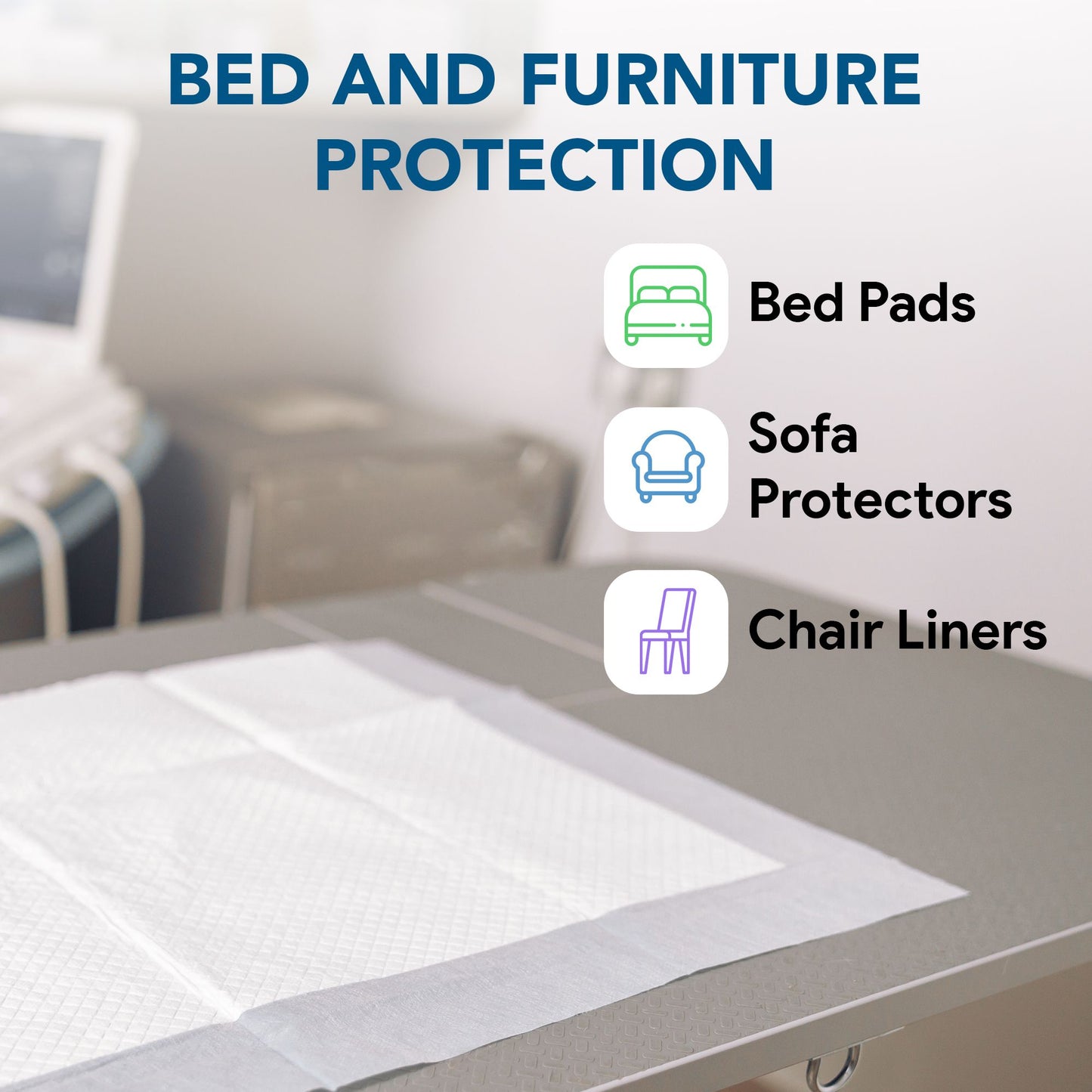 Disposable Incontinence Bed Pads 36"x70", 31"x31" Pad and Tuckable Poly Sides