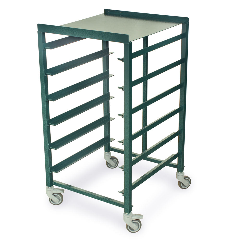 Secure scope tray holding system, with individual trays held in place by zero-slide tray retainers