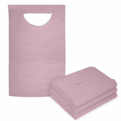 Available in packs of 25, 50, 100, AND 300, these disposable bibs are the best value! They come in black, grey, pink, white, tie-dye, and camo.
