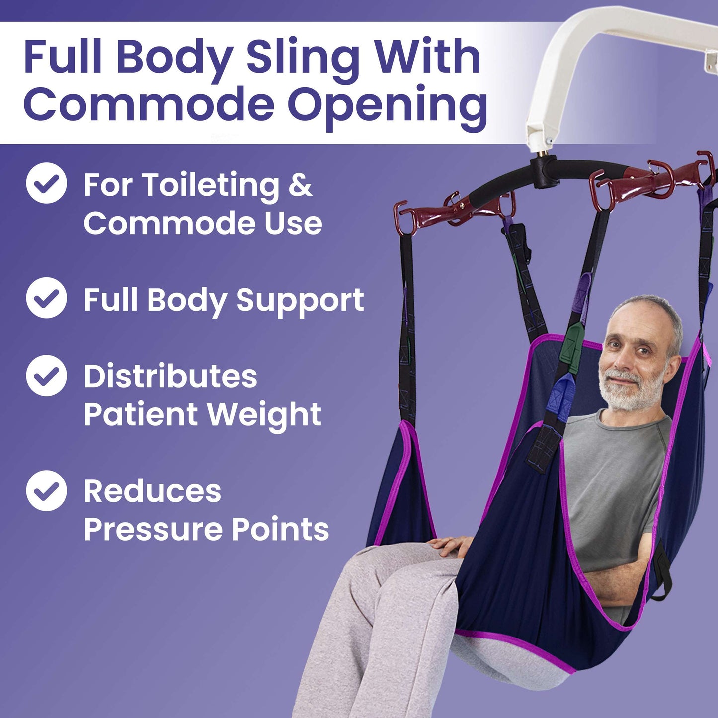 Full Body Slings with Commode Openings: Addressing the needs of patients with toileting requirements, they offer convenience and dignity. Caregivers can easily facilitate toileting routines without having to completely remove the sling, streamlining the process for both patients and caregivers.